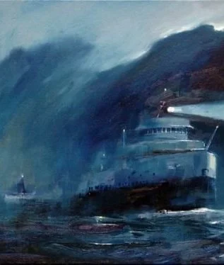 Perk opens the door to the thick scent of cold wet iron. He squints against the deck lights, the freighter’s speed revealed by minuscule rainbows reflecting in fog moving past the wheelhouse. Droplets form on his heavy peacoat, the officer jacket of the Pittsburgh Steamship Division. He pauses to sip coffee from lip of a mug, lest he spill in his eagerness to witness what he’d predicted would happen this night.