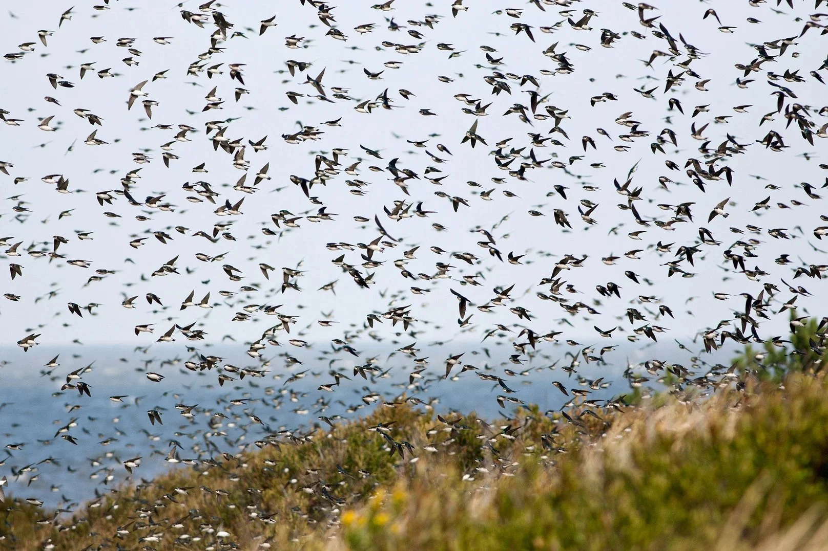 MIGRATING TREE SWALLOWS. Migratory birds tend to concentrate in large numbers along any number of U.S. coastlines including the N. American Great Lakes. Image: William Leaman / Alamy